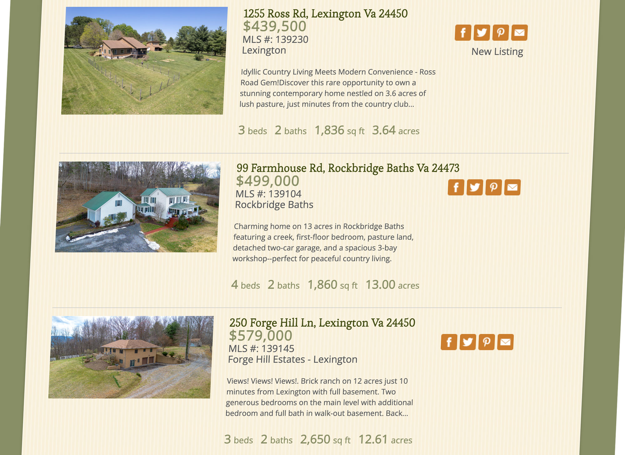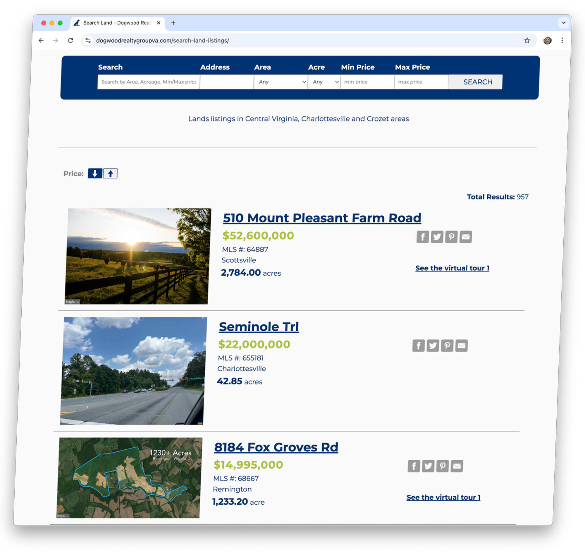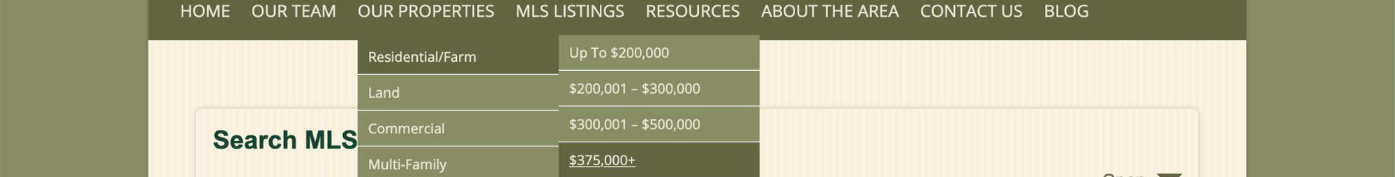 Search forms are intuitive – they allow visitors to filter quickly by location, price, property type, acreage, and more.